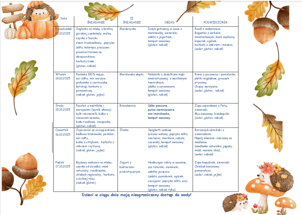 Jadłospis 13.10-17.10.2025 r. 🍏🍎🥑🫑🥪🥛🍽️